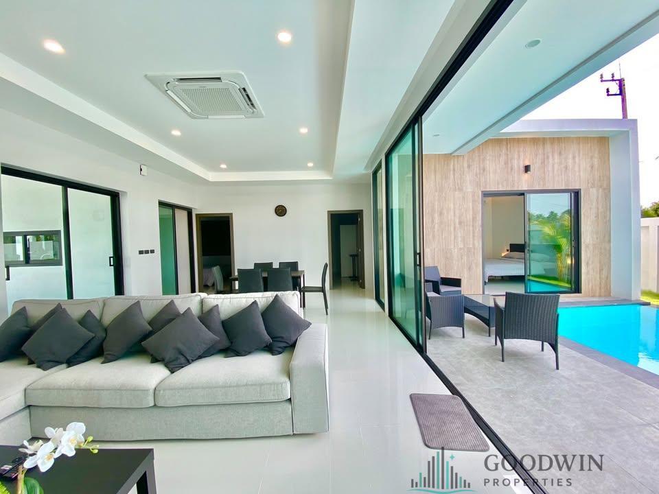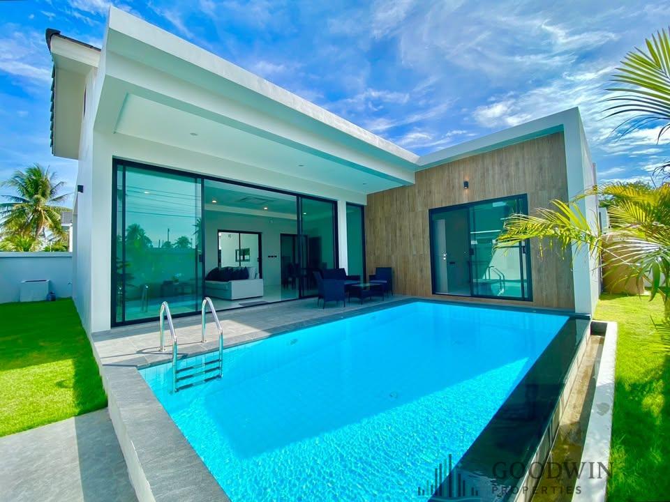 3 Bedrooms and 2 bathroom house (130 sq.m. of living area and 292 q.m. of land plot) @ Hivery Pool Villa 2 (situated in East Pattaya & Huai Yai area). Listed for rent for price - 55 000 THB per month based on long term rental period. This unit comes Fully furnished, equipped with Kitchen, Cooking hob, Microwave, Fridge, TV, Air-con, Washing machine, Internet, Cable TV, Terrace, Covered parking, Outdoor shower, BBQ zone and registered in Thai name.