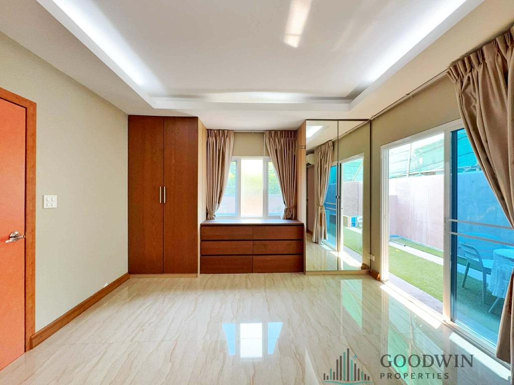 3 Bedrooms and 3 bathroom unit (200 sq.m. of living area and 260 q.m. of land plot) (situated in Na Jomtien area). Listed for rent for price - 55 000 THB per month based on long term rental period. This property comes Fully furnished, equipped with Kitchen, Cooking hob, Fridge, TV, Air-con, Washing machine, Internet, Cable TV, Covered parking and registered in Thai name.