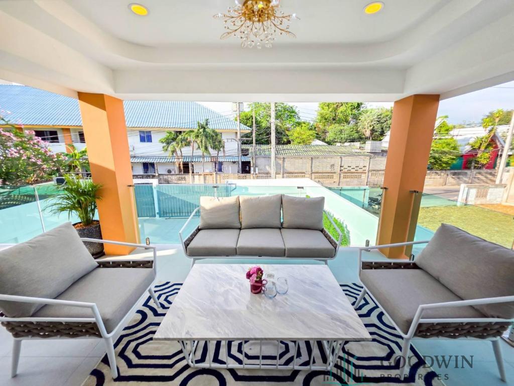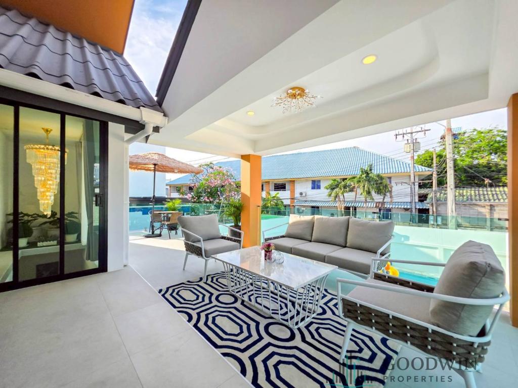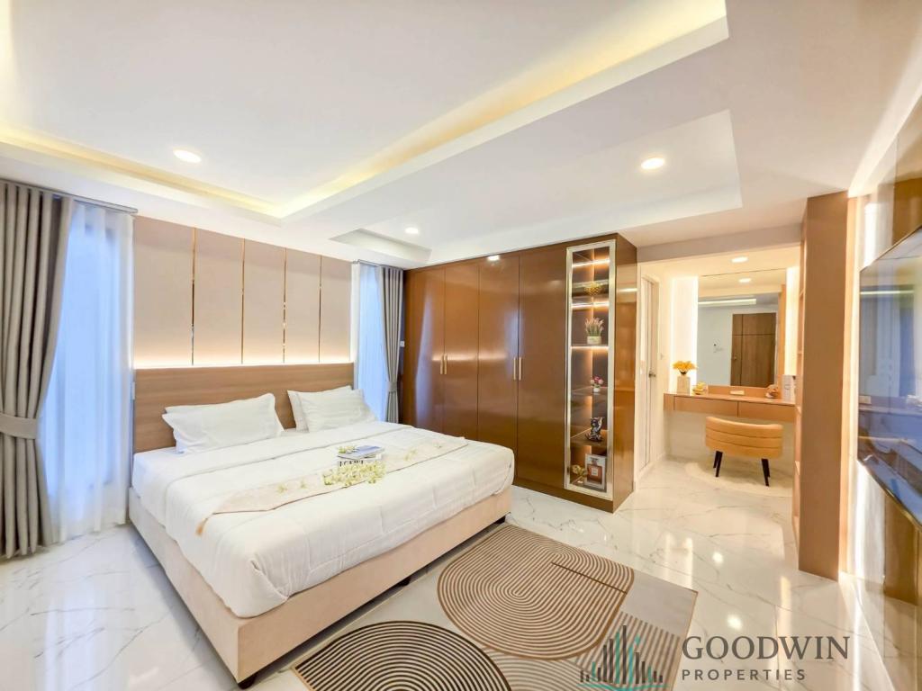 5 Bedrooms and 6 bathroom unit (180 sq.m. of living area and 302 q.m. of land plot) (situated in South Pattaya area). Listed for sale for price - 14 900 000 THB. This property comes Fully furnished, equipped with Kitchen, Cooking hob, Microwave, Fridge, TV, Air-con, Cable TV, Outdoor shower, Garden house and registered in Thai name.