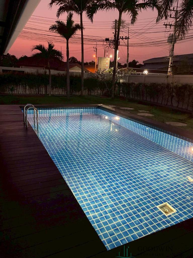 3 Bedrooms and 2 bathroom unit (500 sq.m. of living area and 772 q.m. of land plot) (situated in East Pattaya & Huai Yai area). Listed for rent for price - 55 000 THB per month based on long term rental period. This property comes Fully furnished, equipped with Kitchen, Cooking hob, Microwave, Fridge, TV, Air-con, Washing machine, Cable TV, Bathtub, Covered parking, Garden house and registered in Thai name.