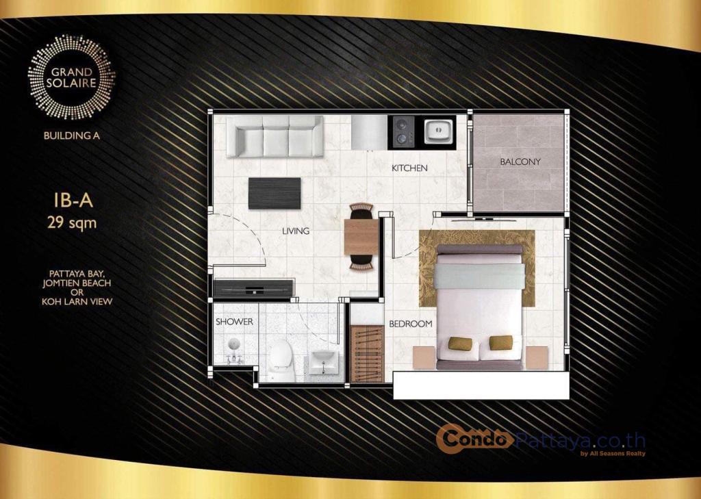 ห้อง 1 ห้องนอน อยูชั้น 28 วิวเมือง ขนาด 29 ตรม @ Grand Solaire Pattaya ตั้งอยู่แถว พระตำหนัก. ราคาขาย สำหรับห้องชุดนี้เหลื่อแค่ 3 360 000 บาท ห้องชุดนี้ เฟอร์นิเจอร์ครบ และมี ห้องครัว, เตา...