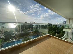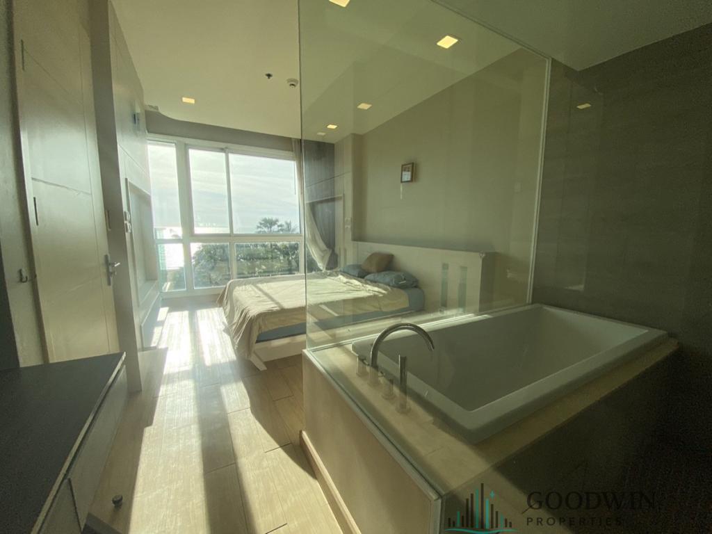 2 Bedrooms (96 sq.m.) @ Cetus Beachfront (situated in Jomtien area). Listed for rent for price - 55 000 THB per month based on long term rental period. This unit comes , equipped with Cooking hob, Microwave, Fridge, Air-con, Bathtub, and registered in Thai name. This unit is situated on 5 floor and has nice Sea view, City view.