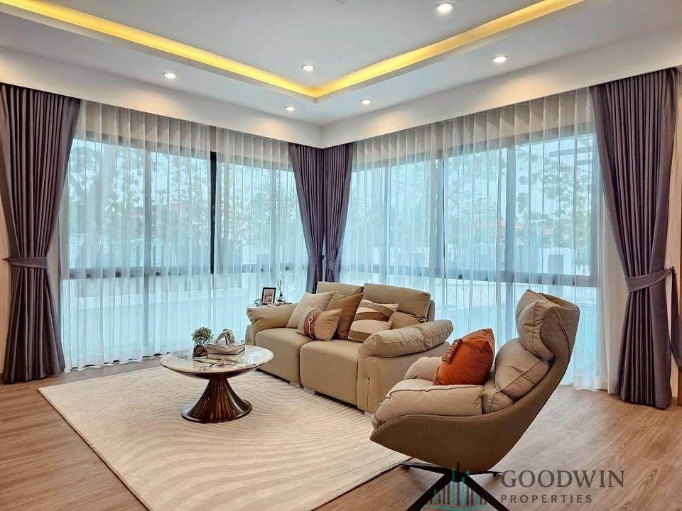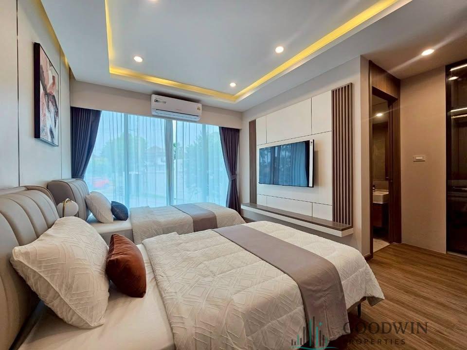 4 Bedrooms and 5 bathroom unit (236 sq.m. of living area and 374 q.m. of land plot) (situated in Jomtien area). Listed for sale for price - 19 900 000 THB. This property comes , equipped with Kitchen, Microwave, Fridge, TV, Air-con, Cable TV, Covered parking and registered in Thai name.
