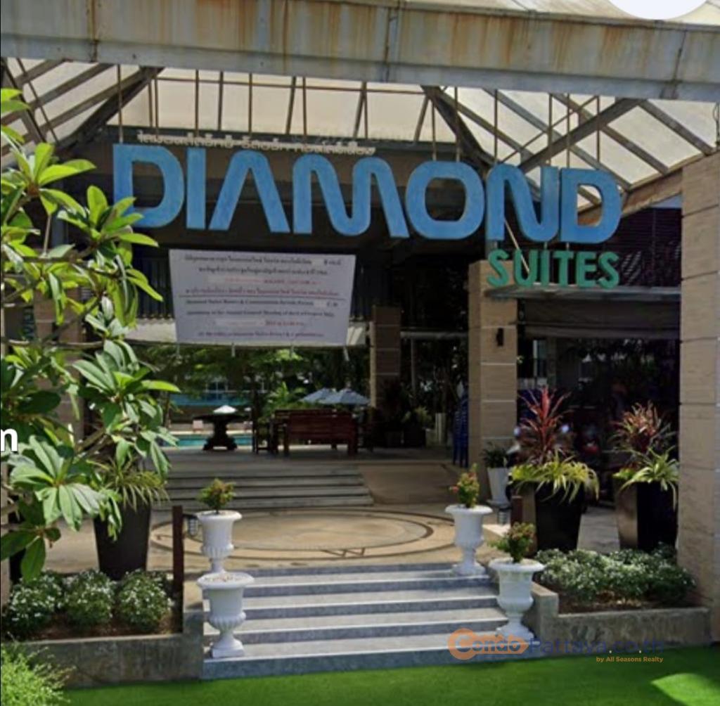 Studio (40 sq.m.) @ Diamond Suites (situated in South Pattaya area). Listed for sale for price - 1 960 000 THB. This unit comes Fully furnished, equipped with Kitchen, Cooking hob, Microwave, Fridge, TV, Air-con, Washing machine, Internet, Cable TV, Bathtub, and registered in Foreigner name. This unit is situated on 4 floor and has nice Pool view.