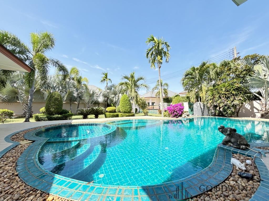 3 Bedrooms and 2 bathroom house (852 sq.m. of living area and q.m. of land plot) @ Baan Dusit Pattaya (situated in Baan Saray & Baan Ampuer area). Listed for sale for price - 14 000 000 THB. This unit comes Fully furnished, equipped with Kitchen, Cooking hob, Microwave, Fridge, TV, Air-con, Oven, Internet, Cable TV, Terrace, Covered parking, Outdoor shower, Outdoor kitchen, BBQ zone, Maid room, Garden house and registered in Thai Company name.