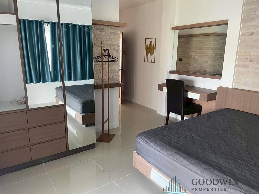 3 Bedrooms and 2 bathroom unit (500 sq.m. of living area and 772 q.m. of land plot) (situated in East Pattaya & Huai Yai area). Listed for rent for price - 55 000 THB per month based on long term rental period. This property comes Fully furnished, equipped with Kitchen, Cooking hob, Microwave, Fridge, TV, Air-con, Washing machine, Cable TV, Bathtub, Covered parking, Garden house and registered in Thai name.