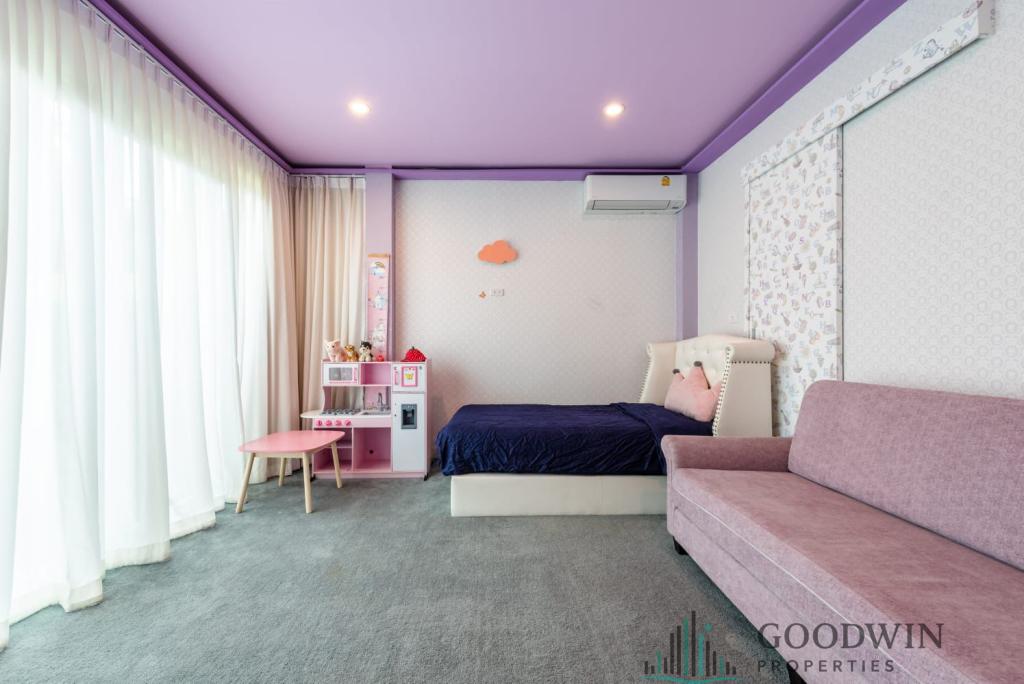 Дом - 4 Спальни и 5 сан/у, с жилой площадью 500 м2, расположенной на м2 участке земли Стоимость покупки данного объекта - 8 600 000 тайских бат. Вилла Полностью меблирована, и оборудована: Терасса, Крытая парковка, Игровая комната, Кухня, Кухонная плита, Микроволновка, Холодильник, Телевизор, Кондиционер, Духовка, Стиральная машина, Интернет WiFi, Кабельное телевидение. Регистрация недвижимости (квота): Тайская компания.